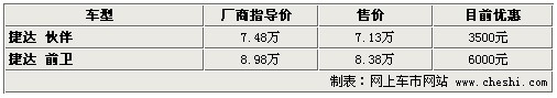 據(jù)4S店銷售人員介紹:目前捷達(dá)共有兩款車型,分為捷達(dá)伙伴和捷達(dá)前衛(wèi)。捷達(dá)伙伴目前優(yōu)惠3500元,捷達(dá)前衛(wèi)優(yōu)惠6000元。目前現(xiàn)車較為充足,但個別店內(nèi)現(xiàn)車顏色不全,如預(yù)定只需等待1周時間。在店內(nèi)做一條龍服務(wù),還可獲贈價值1000元裝飾,包括地膠、腳墊、座套等。