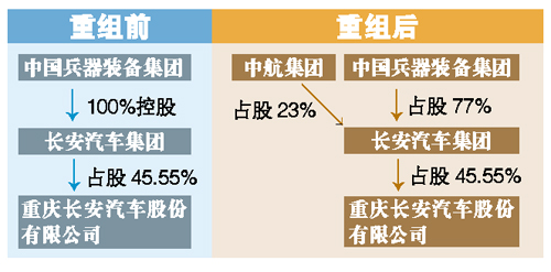 與此前“中航將汽車資產(chǎn)無償劃撥給長安汽車集團”的報道不同, 根據(jù)重組方案,中航工業(yè)以其持有的昌河汽車、哈飛汽車、東安動力、昌河鈴木、東安三菱的股權(quán),劃撥給兵裝集團旗下的中國長安汽車集團;兵裝集團將旗下中國長安汽車集團23%的股權(quán)劃撥給中航工業(yè)。兩集團重組成立新的中國長安汽車集團股份有限公司,兵裝集團持股77%、中航工業(yè)持股23%。