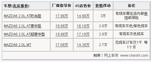 點評:馬自達6改款車型即將亮相,目前老款大幅度的優惠也在為新車讓路。雖然目前尚不清楚新車何時在國內上市,但性價比最高的時尚版車型跌破15萬也算得上中級車中的超值產品了,欲出手的消費者可以到店具體咨詢。