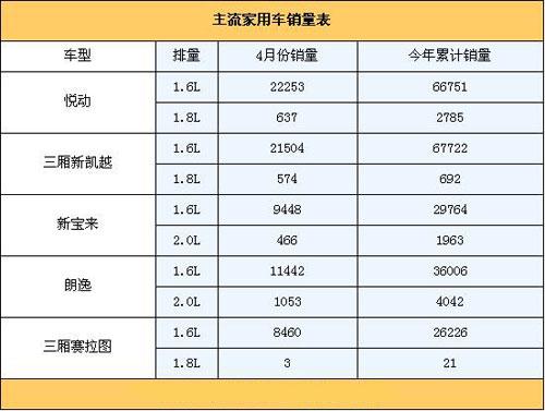 上表所列的都是銷售非常火爆的主流家用轎車。悅動剛剛在4月份拿到了單車銷量冠軍的頭銜,我們可以看到它超過兩萬輛的月銷量當中1.8L車型僅僅貢獻了不到700輛,作用微乎其微;同樣月銷量超過兩萬輛的三廂凱越與悅動的情況如出一轍,1.8L車型同樣受到市場的冷落。