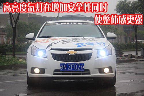 這個“街跑”科魯茲主要針對外觀進行了一系列改裝。首先,它的車頭部分最為顯著的改變在于增加了高亮度的氙氣大燈,使原本炯炯有神的“鷹眼”更加夸張,不僅看起來漂亮,而且提高了夜間行駛安全性。