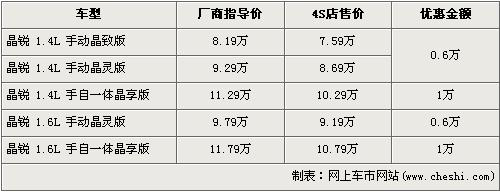 上海大眾斯柯達旗下的第二款車型晶銳已于去年12月22日上市,這款時尚、歐洲風格鮮濃的特色小車共有1.4L、1.6L兩種排量共5個車型在售,售價區間為8.19萬元-11.79萬元。近日據網上車市網站價格監測系統顯示,斯柯達晶銳全系最高的優惠從6000元升到了1萬元,具體車型價格請看下表: