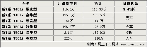 據4S店銷售人員介紹:目前新款7系現車較少,大部分需要預訂,預定時間基本在3-4個月時間,最長需等4個月以上。目前店內只有740Li領先型及750Li豪華型少量現車,顏色有太空灰色。在優惠政策方面,740Li系列可以打9.45折,750Li系列可以打9折,喜歡的朋友可以到店內洽談,還可獲得更高的優惠。