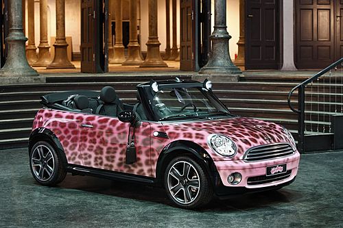 寶馬Mini與歐洲最大的慈善活動之一“生命之球"(Life Ball)慈善機構晚會再次合作,推出了一款特別定制的Mini Cooper敞篷版,這款特別版車型是按照Kate Perry的服裝款式所設計的,如今這款特別版車型在奧地利首都維也納亮相了,粉色和黑色的豹紋外觀吸引了不少觀賞者的駐足。
