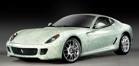 一輛由中國當代著名藝術家盧昊悉心設計的中國限量版法拉利599 GTB Fiorano藝術典藏跑車引起轟動,這輛獨一無二的法拉利全身散布著宋代哥窯開片瓷器式的紋理,正是盧昊用現代創意的手法將中國古典元素通過手工漆繪形式在車身上得以完美展現。車身以溫潤的冰玉色為漆底,上面精心繪制了深淺錯落、含蓄幽雅的哥窯開片瓷紋圖案。除了“中國”字樣的車身銘牌外,方向盤點火按鈕上“啟動”和轉速表上“零-十”的字樣,均采用中國書法篆體,細節之處的中國元素,同樣被不露聲色地彰顯得淋漓盡致。一千多年前,正是哥窯通過絲綢之路讓中國瓷器揚名于歐洲,如今帶著古代文明神韻的歐洲名車來到經典的發源地,讓人有種時光交錯之感。