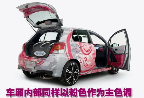 豐田雅力士的目標消費人群主要為女性消費者,因此豐田此次與零部件合作部門以及售后合作商推出的這款改裝雅力士車型采用了粉色的車身噴涂,其車廂內部也是以粉色作為主色調。