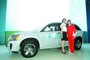 上周,通用汽車零油耗、零污染的氫燃料電池車雪佛蘭Equinox在北京奧運會“水立方”場館西側的盤古大觀亮相。