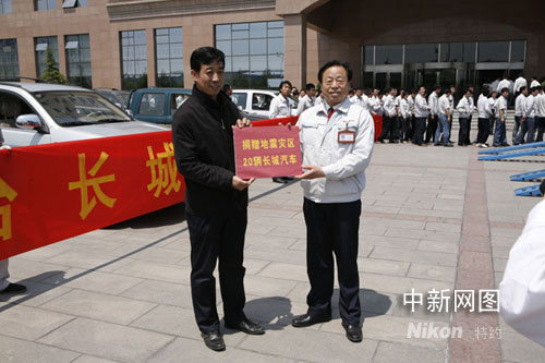 中新網(wǎng)5月13日電 四川汶川發(fā)生的地震災(zāi)情牽動(dòng)著億萬(wàn)同胞的心。消息傳至保定后,長(zhǎng)城汽車高層領(lǐng)導(dǎo)于昨晚連夜召開緊急會(huì)議,作出兩項(xiàng)重大決定:一是通過(guò)紅十字會(huì)向?yàn)?zāi)區(qū)捐贈(zèng)20輛SUV、皮卡,作為救援工作車;二是原計(jì)劃在13日晚舉行的“轎車發(fā)動(dòng)機(jī)工廠落成、全鋁VVT發(fā)動(dòng)機(jī)下線”活動(dòng)一切從簡(jiǎn),臨時(shí)增加員工向?yàn)?zāi)區(qū)捐贈(zèng)儀式。