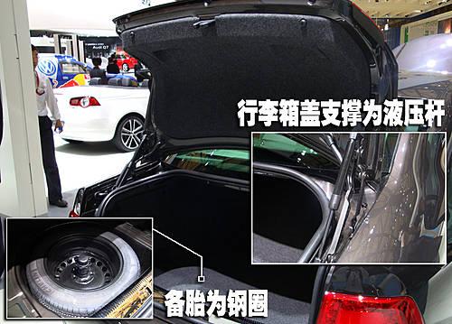帕薩特領馭的行李箱蓋支撐方式是兩側的液壓支桿,雖然可以通過鑰匙實現遙控解鎖,但是這種設計并不能完全打開行李箱蓋。該車所配備的備胎為一條配有鋼輪轂的備胎。