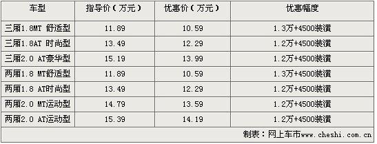 福克斯的設計來自歐洲福特,歐洲式的簡潔是其帶給人們的第一印象,線條略顯平淡,明朗的腰線、寬厚的輪眉,使得福克斯整體感覺變得更為強壯,在視覺效果上就更顯車身穩重,但還福克斯所傳達的運動風格依舊很強烈。兩廂版看上去更加的運動,三廂版更家用化一些。,目前上海地區購買福克斯部分車型可以得到1.3萬元的價格優惠。具體車型售價見下表: