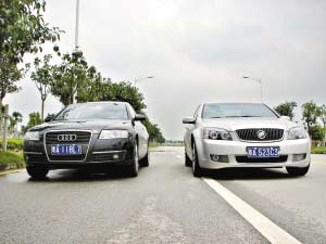 “主流與非主流”對比測試輪到C級車,主流的代表是奧迪A6,非主流的代表是別克林蔭大道。作為一個“都市小白”,這個級別的車我是肯定買不起的,所以趁著試駕的機會過了一把癮。