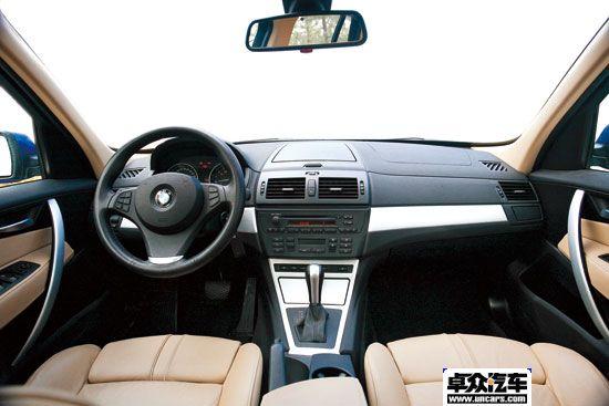 內飾設計上X3也依然保留了寶馬的傳統風格,深色中控臺在亞光鋁質裝飾條映襯下,將車內氛圍烘托得與機械性能一樣動感。沒有iDrive系統的鼎力支持和顯示屏的美化,多少讓人覺得中控臺“禿”了一些,但是按鍵依然布置得整齊有序。環顧車內,感覺X3的豪華程度比家族中的其他兄弟差了不少,除了做工精細的電動真皮座椅和全景式天窗還算符合X3的價格,據說購買新X3可以得到BMW增強版便攜式導航系統,但是在這輛試駕車上沒有看到。最令人遺憾的是后排連獨立的空調出風口也沒有,感覺還不如新3系的配置豐富。