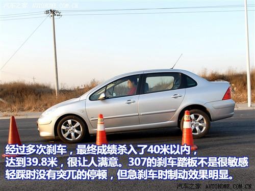 標致307沒有裝備什么特殊的剎車系統(tǒng),也沒有速騰冠軍版那樣的寬胎,但剎車成績還是不錯的,39.8米比我們定義的優(yōu)秀剎車距離最高線42米要短不少,而且在連續(xù)剎車測試中,剎車系統(tǒng)和輪胎的熱衰性控制的很好,基本沒有出現(xiàn)因過熱而增大距離的情況。只是由于307的懸掛調(diào)教偏軟,全力制動時前懸掛被壓縮到極致,后輪幾乎沒有附著力,此時車輛穩(wěn)定性比較令人擔憂。