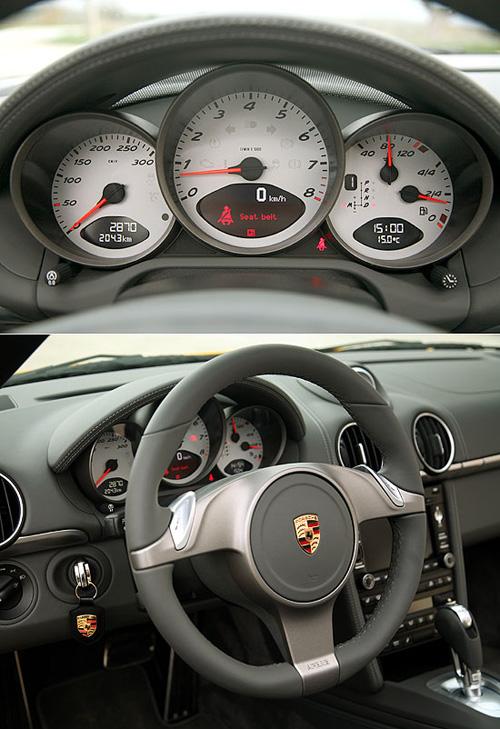 不同于911經(jīng)典的5環(huán)表,Boxster采向3環(huán)的設(shè)計(jì),搭配液晶面板,提供豐富的行車信息,配合PDK的搭載,儀表中亦出現(xiàn)檔位顯示器。而不變的置中式轉(zhuǎn)速表以及左側(cè)鑰匙點(diǎn)火開關(guān),則是保時(shí)捷品牌的堅(jiān)持。