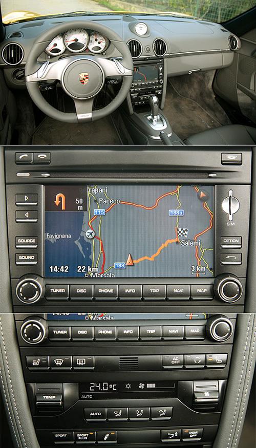 配合PDK變速箱換上與911 PDK相同的3輻式方向盤,以及閃爍著PDK字樣的排檔桿,是Boxster小改款車室內(nèi)最大的不同。而中控臺(tái)上的PCM多媒體系統(tǒng)以及空調(diào)系統(tǒng)接口,亦比照911進(jìn)行調(diào)整。