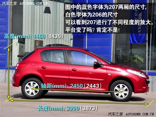 來到車身側(cè)面,206的本質(zhì)還是一覽無余,你幾乎看不出任何與206的區(qū)別,但是在對(duì)比廠家的車身參數(shù)的時(shí)候,我們發(fā)現(xiàn)一個(gè)有趣的現(xiàn)象,207兩廂的長(zhǎng)度和高度比206大一些還容易理解,但是軸距和車身寬度都長(zhǎng)了那么不多的幾毫米,卻有點(diǎn)匪夷所思,不過我們肯定這還是206的平臺(tái)。