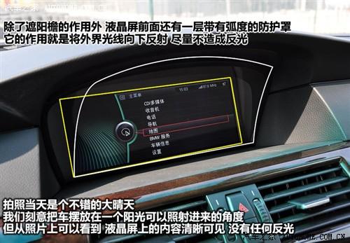 在一些配有中控臺(tái)液晶屏的車上,經(jīng)常會(huì)遇到屏幕反光而使我們看不清屏幕內(nèi)容的情況,這在陽光明媚的天氣或清晨旁晚陽光斜射的時(shí)候更容易發(fā)生,但寶馬5系iDrive系統(tǒng)的液晶屏基本不會(huì)遇到這樣的麻煩。