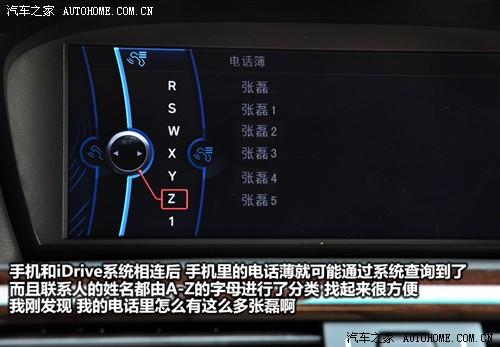 藍(lán)牙免提系統(tǒng)是強(qiáng)調(diào)豪華的車型上的必備配置,在此我們也通過iDrive系統(tǒng)進(jìn)行了一次和手機(jī)相連的操作。和一般車型上的一樣,iDrive系統(tǒng)提供的藍(lán)牙免提也需要查找、配對(duì)、連接三個(gè)步驟才能和手機(jī)相連,整個(gè)過程清晰易懂,只要按照提示操作就沒有任何難度可言。相連后手機(jī)內(nèi)的電話薄可以通過iDrive系統(tǒng)查詢到,而且電話薄里聯(lián)系人的姓名都按A-Z字母進(jìn)行了分類,用起來比較方便。