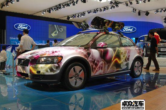 這款車造型和普通的C30沒什么區(qū)別,不過車身顏色采用了夢幻般的色彩涂裝,非常好看。此外,車窗和擋風(fēng)玻璃也能投影各種影像,配合車身顏色讓這款車看起來非常炫動。很好的契合了C30以及沃爾沃汽車年輕、時尚、激情的形象。
