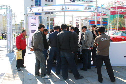 百強巡展文登站的現場,上海通用別克的展位兩天來一直是人源不斷,消費者在詳細的咨詢,經銷商全天都在不停的講解,現場的銷售場面是一片火熱。據該參展經銷商介紹,他們近期推出的現金優惠吸引了很多消費者購買新車,效果非常明顯,本月的銷售任務早已完成,但想買車的消費者還是絡繹不絕,相信4月份他們會有一個很好的銷量。
