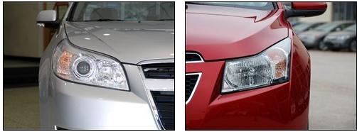新樂風(fēng)在引擎蓋上增加了三條明顯的突起的線條正好與中網(wǎng)融為一體,該車的前大燈燈的后側(cè)微微上翹。并且大燈的上方與引擎蓋完全吻合。大燈的造型有點(diǎn)像科魯茲與景程的結(jié)合品。樂風(fēng)的前臉無論是總體的造型還是細(xì)節(jié)的處理都和雪佛蘭的家族風(fēng)格進(jìn)行了統(tǒng)一。