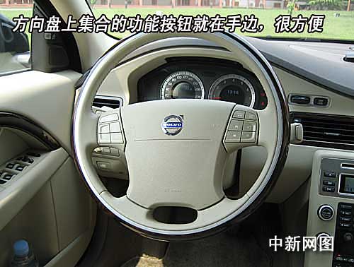 方向盤給人的第一感覺是漂亮,握在手里很充實。為了增加安全性,國產沃爾沃s80L 3.0 T6 AWD智尊版的方向盤使用了桃木方向盤,這種方向盤外側是胡桃木,內側為真皮,兩種材質被一條細細的鋁金屬帶隔開,這種設計既防止實木光滑的表面可能造成的不安全因素,也增加了真皮的視覺和尊貴效果。方向盤上集合的功能按鈕就在手邊,使用時不用刻意去夠,很方便。