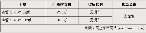 據(jù)經(jīng)銷商銷售人員介紹,道奇鋒哲車型已經(jīng)停產(chǎn),并且各道奇經(jīng)銷店已經(jīng)沒有鋒哲現(xiàn)車,近期也不會再進口此車。欲購買此車的消費者需等待一段時間,如果復產(chǎn)國內(nèi)也只會引進30.8萬元的高配車型。