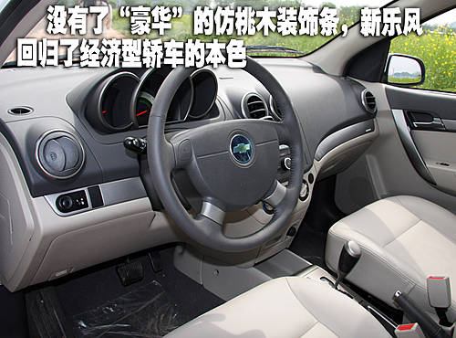 乍一看新樂風的內飾與老款區別不大,但是如果你仔細觀察新樂風的內飾還是能夠發現其與老款車型的許多細節變化。新樂風放棄了原來老款車型“豪華”的仿桃木內飾條,這讓新樂風這樣一款7-10萬元區間的家用轎車回歸了經濟型的本色。事實上坐進新樂風的車內,你一定會感覺到這種簡潔的風格會更加舒服。