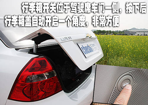 位于駕駛席車門下角的行李箱開關按鈕在按下后,行李箱可以自動向上掀起一個角度,別看這是一個細小的設計但是絕對會讓日常使用變得更加便捷。此外,雪佛蘭新樂風在“精品家轎”基礎上進一步提升,配置水準提高了國內小車市場的標配門檻:全系車標配四門電動車窗,舒適版車型還增加遙控鑰匙、電動外后視鏡等一系列便利實用的配置,更好地滿足舒適性和功能導向的家庭用車需要。總體來說新樂風依然是雪佛蘭旗下一款出色的入門級車型,我們也相信新樂風在消費者心目中依然會占有較高的地位。