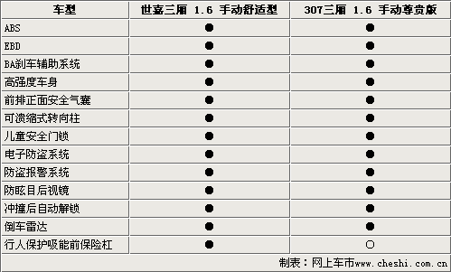 東風雪鐵龍世嘉三廂和標致307都屬于同一平臺的產物,所以在車身結構上完全一樣。作為同一級別的兩款車型在安全配置方面基本相同。ABS、EBD、安全氣囊、安全車身都被列為了它們的標準配置。值得一提的是它們還裝備了沖撞自動解鎖系統,大大確保了在發生事故時乘員的安全。但仔細看下來,世嘉三廂配備了碰撞緩沖保險杠,該項配置確保了在發生事故時對行人傷害的程度降到最低。
