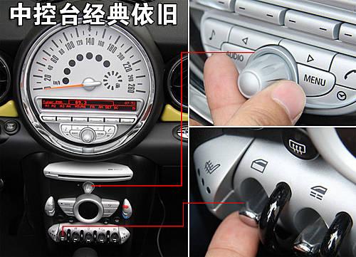 新一代Mini Cooper和Mini Cooper S敞篷版中控臺自上而下依然熟悉的大圓形時速表、音響調節按鈕及旋鈕、CD機頭、自動空調及車窗和中控門鎖等控制開關,與其它Mini車型如出一轍。