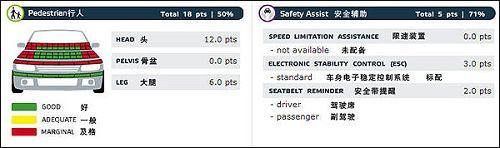昊銳的前保險(xiǎn)杠對(duì)行人最友好,但前引擎蓋的邊緣部分對(duì)行人傷害較大。昊銳同樣標(biāo)配了ESC車(chē)身穩(wěn)定電子控制系統(tǒng),安全帶也有提醒功能符合歐洲安全標(biāo)準(zhǔn)。昊銳在成年人保護(hù)上獲得90%的得分率,兒童安全方面獲得81%得分率,行人保護(hù)獲得50%得分率,在輔助設(shè)備項(xiàng)目上獲得71%得分率,最終獲得5星安全評(píng)價(jià)。