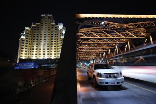 我正在駕駛一臺巨大的凱迪拉克,它的長度突破了5米,而高度和寬度都突破了2米,這讓正在我身旁的帕薩特看上去明顯比平時小了一號。帶有珠光效果的白色漆面和布滿周身的鍍鉻裝飾顯然是為了引起更好的關注度而特意安排的。這種外部裝飾效果很符合我對傳統凱迪拉克的定義,巨型而且總是閃閃發光,但這樣的裝備并不能將我現在駕駛的這臺車和一臺普通的凱雷德區別開來。