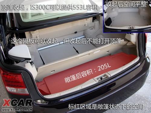 動力系統IS300C和普通IS車型一樣,3.0L的V6發動機具備231馬力和300牛米的動力儲備,拉動這輛IS很輕松。6速手自一體變速箱能提供更緊密的動力銜接,平順性也可提高舒適度。據店內工作人員稱,IS300C的底盤經過了重新調教,會比普通車型更加硬朗一些,操控性更強,不過駕駛方面的內容還要等我們拿到試駕車才可以了解。