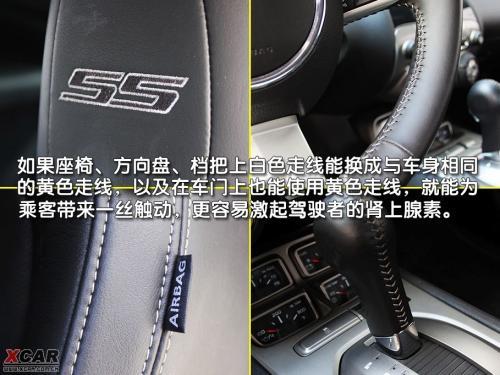 運動設(shè)計的三幅式方向盤造型給人力量感,銀色的裝飾很好地提升了這一效果,當(dāng)然上邊也少不了金屬字樣的SS,同時在方向盤后邊還可以看到采用左減右加式的方向盤換檔撥片。只是尺寸過大的方向盤,實在讓人感覺有些不易操控,對于大多數(shù)美國轎車來說,大號的方向盤似乎已經(jīng)成為了傳統(tǒng),一時很難改過來。