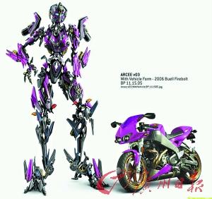 可以看到,在新增的這些角色里,量產車型依然是雪佛蘭的天下,尤其是正義的博派,新增車型都是雪佛蘭最新或即將上市的車型。還有三輛帥氣的摩托車,其中粉色、藍色的摩托車都是以女性角色出現,藍色摩托車還是Ironhide(鐵皮)的女朋友,看來傻頭傻腦的鐵皮在談戀愛這個嚴肅問題上倒是一點兒都不傻,動作相當快。