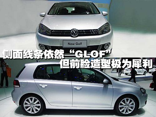 第6代高爾夫已經放棄了大眾家族式的“U型前臉”設計。而前臉部分的造型更像是大眾“scirocco”跑車的前臉風格。此外,車身高度上6代高爾夫也顯得更加低矮,因此整體視覺上更具運動氣息。