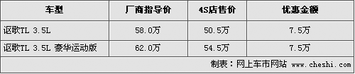 據4S店銷售人員介紹,目前謳歌TL在原來車型的基礎上增加了一款豪華運動版車型,運動版車型更換為19村外觀輪轂,并增加了擋泥板等套件,售價為62萬。現在消費者購車最高可優惠現金7.5萬元,優惠后售價最低為50.5萬。作為一款豪華運動型轎車,其在價格上擁有較大的優勢。目前TL普通版的現車較為齊全,并且有多款內飾顏色可供挑選,而運動版還需預訂。