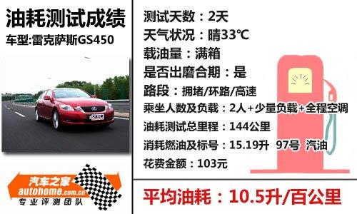 在油耗這個測試環(huán)節(jié),汽車之家專業(yè)測試團隊為了模擬消費者日常駕駛場景,特意選擇了雷克薩斯GS450h有可能出現(xiàn)的各種路面進行油耗的測試,以求得出一個盡量公正的油耗成績。我們共駕駛GS450h行駛了144公里,其中包括大約75公里非常嚴(yán)重的城市擁堵路段,30公里的車輛較少的高速公路,剩下的35公里是城市環(huán)路和城郊公路。在整個測試過程中,車內(nèi)乘員2名,另裝載小于10公斤的物品,最終得出的成績是百公里油耗10.5升。作為一款中大型的轎車來講,GS450h的油耗成績編輯個人表示非常滿意,但作為一款混合動力車型來講,這款車就有點鋪張浪費了,混動車型的初衷就是要靠電動機輔佐發(fā)動機工作,以使得車輛整體的耗油量降低。