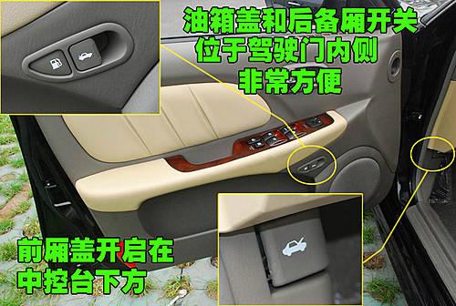 北京現(xiàn)代名馭在前排左側(cè)車門內(nèi)側(cè)設(shè)置了油箱蓋和后備廂的開啟按鈕,傳統(tǒng)的設(shè)計(jì)都放在剎車系統(tǒng)部位,這樣更加方便平常開啟,前艙蓋的開啟按鈕仍設(shè)置在中控臺(tái)左側(cè)下方。