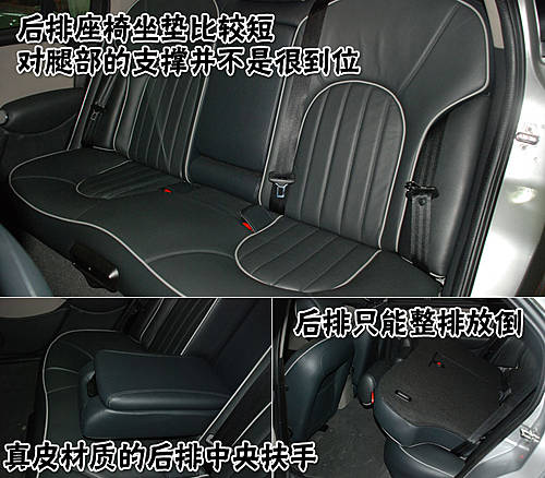 但名爵MG 7L的后排座椅坐墊比較短,對腿部的支撐性并不是非常好。后排座椅中間配備了真皮中央扶手,后排座椅靠背只能整排放倒,不能4/6分離。