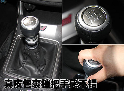 采用真皮包裹+亞光銀面板設(shè)計的擋把不僅是提升了檔次,而且手握的感覺也很不錯,檔位也比較清晰。