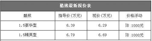 據(jù)經(jīng)銷商介紹,目前店內(nèi)酷熊除了天窗版仍舊沒有現(xiàn)車需要預(yù)訂之外,其他兩款車型均有現(xiàn)車,隨時到店均可提車。以上價格均可直接提裸車,并且可銷往外地,據(jù)店內(nèi)銷售人員介紹,酷熊的定價太低,因此銷售利潤非常少,因此降價空間不大。