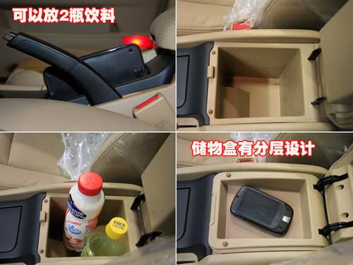 手套箱空間的確較小,雖然開口角度大,但空間不能令人滿意。只能放下2個600mm的飲料瓶,這一點新景程有些令人失望。