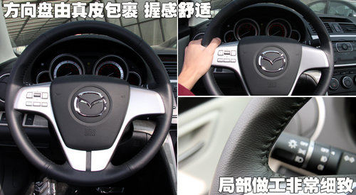 睿翼采用了真皮材質的方向盤,手握感覺很好,2.0L車型內飾較2.5L車型少了許多配置,只有音響控制被集成到方向盤上,駕駛時調節CD更加方便,按鍵周圍的做工非常細致。