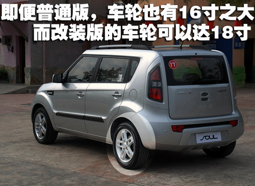 您是否看到過任何一款A0級的小車使用到了16寸的輪胎輪轂?答案當然是沒有的,目前大部分同級別同價位車型最多也就是使用到了15寸而大部分還是停留在14寸而已。東風悅達起亞SOUL的大尺寸輪胎輪轂個性鮮明,提升了整車的檔次感,也讓這款車型更加具備了一款CROSS OVER車型的感覺。