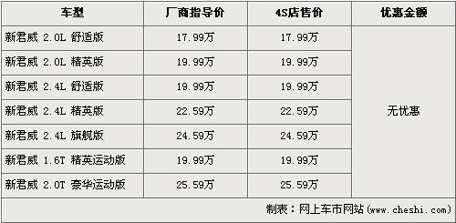 根據北京別克經銷店銷售人員介紹,自別克新君威1.6T上市后,目前別克新君威全系共有7款車在售,售價區間為17.99萬元-25.59萬元。銷售人員還介紹,店內已經有新君威1.6T的現車,顏色以紅色和藍色為主,其他車型的現車也比較充足。如果預訂店內沒有顏色的車型,需交訂金為1千元,下個月可提現車。