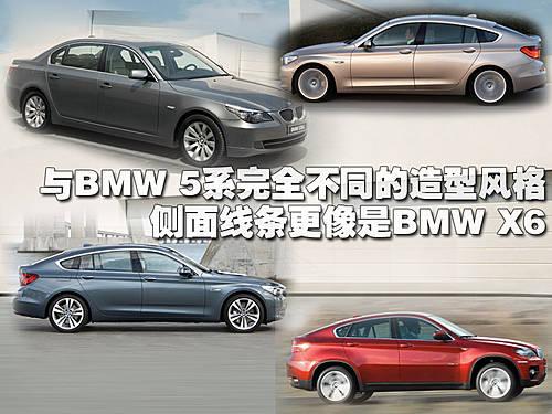 寶馬5系GT的尺寸與現款國內5系Li轎車相近,軸距方面也達到了3.07米。海外車型分為一款柴油引擎和兩款汽油引擎車款,其中頂級引擎配備的5系GT搭載了4.4升雙渦輪增壓引擎,而亮點之處在于8速自動變速器。車輛的頭部吸取了寶馬新一代車型的設計元素。與已經問世的新7系新Z4一樣,這款車型的前雙腎型進氣格柵明顯更大更突出,寶馬動態照明系統大燈也應用在了這款車型中。而尾部的設計在某些角度上看上去更像是寶馬X6。