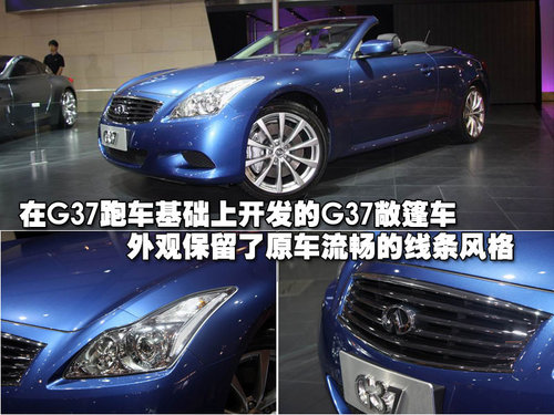本次廣州車展上英菲尼迪攜旗下的跑車型SUV FX50、FX35,豪華運動型G37雙門跑車和G37轎車,高端豪華轎車M35及轎跑型豪華Crossover EX35等多款明星車型驚艷亮相。同時,英菲尼迪正式發布了其全新車型G37硬頂敞篷跑車。