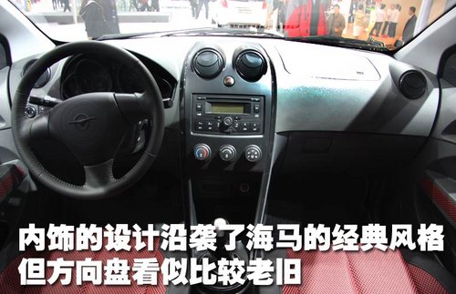 海馬丘比特的內飾設計沿襲了海馬汽車的經典造型風格,采用深灰色內飾顏色布局,整體來看比較典雅大方,但方向盤的設計看似比較老舊。